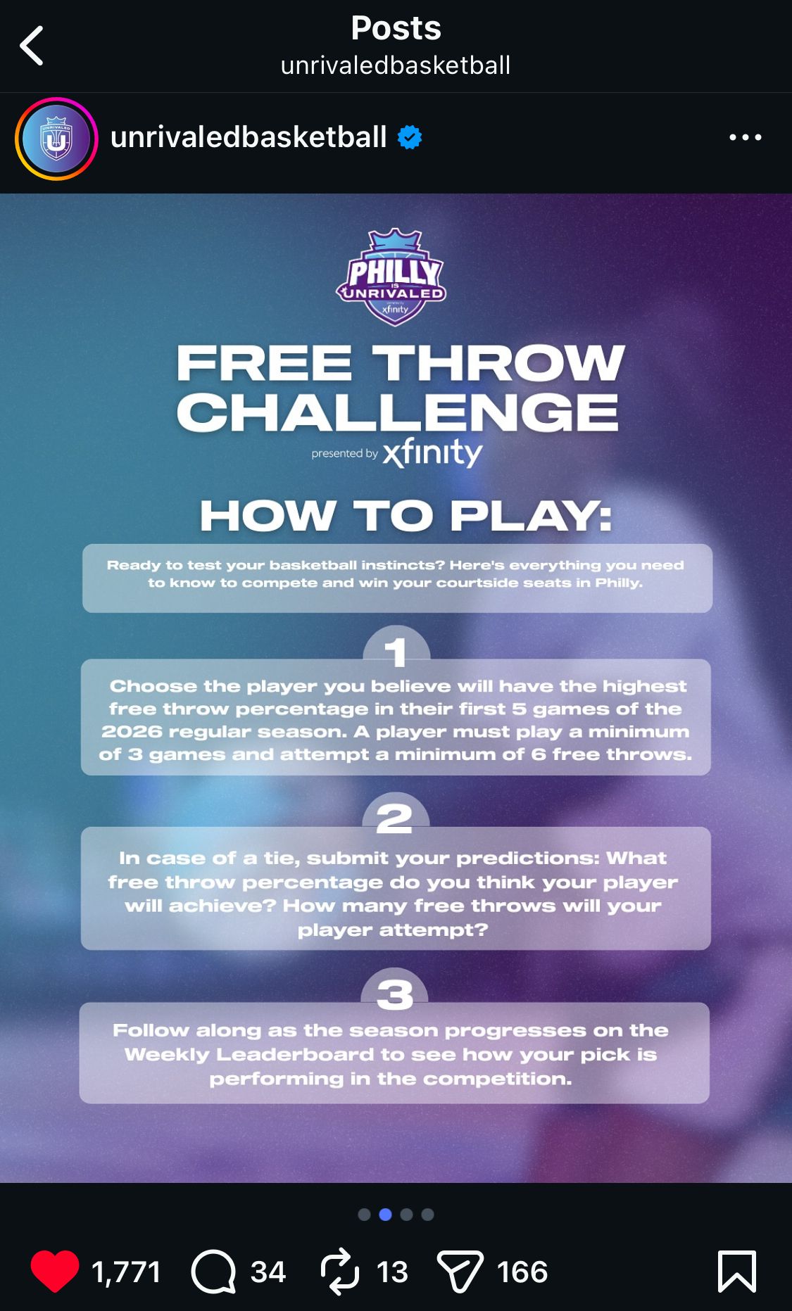 @unrivaledbasketball instagram post describing the rules of the free throw challenge